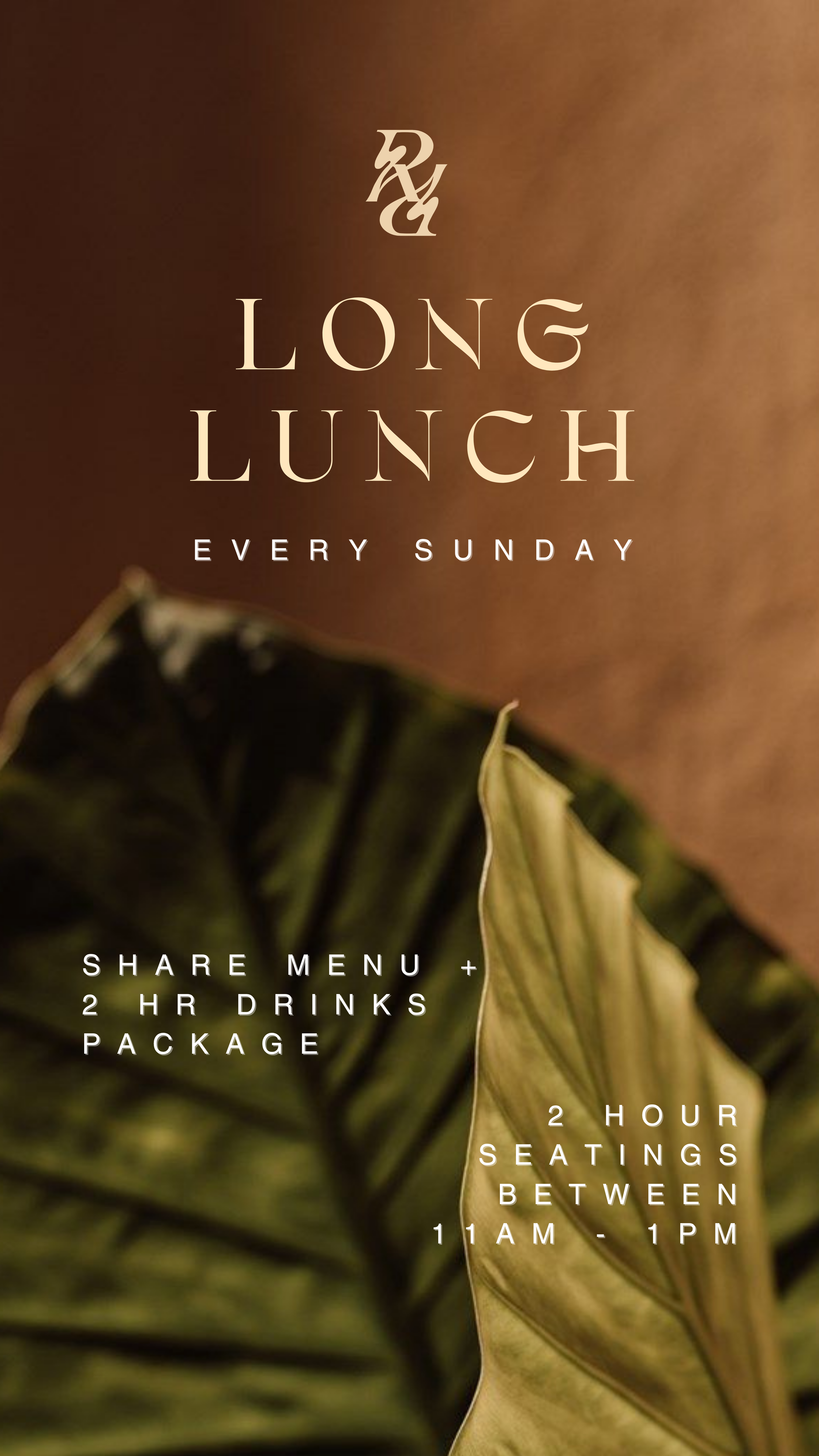 An elevated shared menu with 2 hours of premium drinks.Settle in, stay awhile, and make your Sundays last longer.